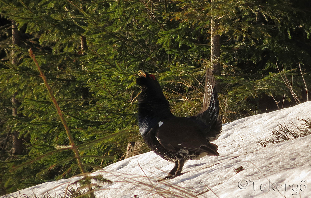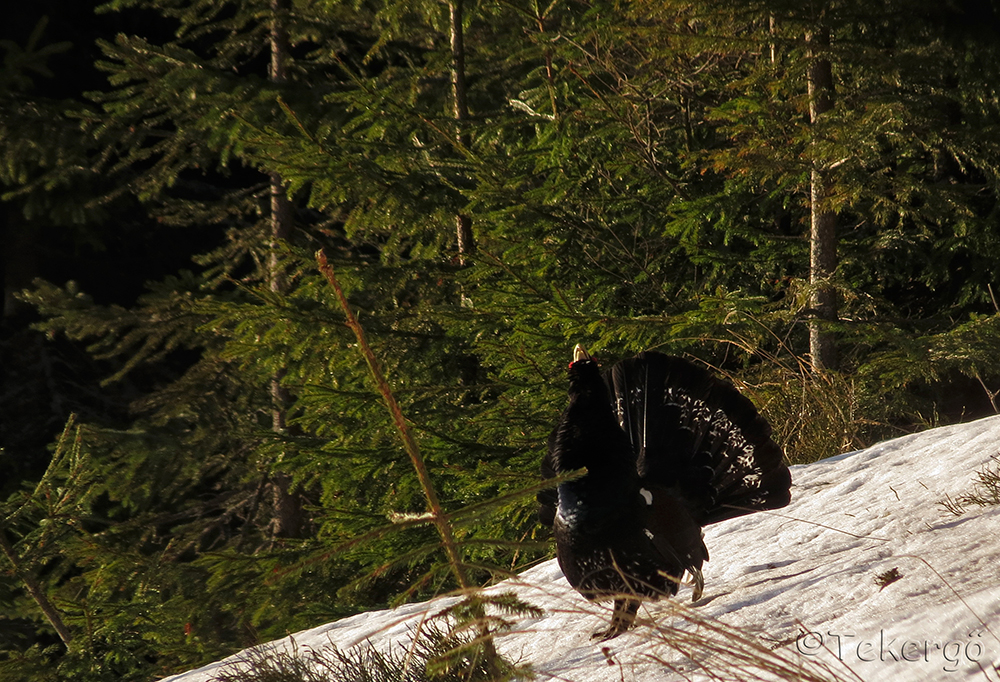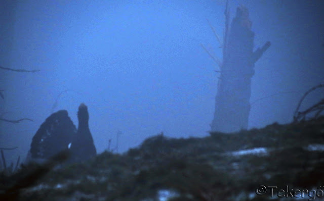 Ugyanekkor mögöttem elindul az erdő: szárny csattogások, mindenféle dürgő hangok, dobogtatások. Nem mozdulhatok, csak hátra pillantok, ez elég ahhoz, hogy lássam majdnem feltapodnak a nagy szerelem hevében és én még csak hozzá sem nyúlhatok a fényképező géphez, nem hogy fotózzak....
