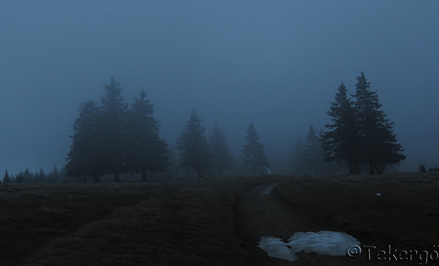 Miután vége mindennek visszaballagok a szálláshelyre, reggeli majd alvás a napon. Természetesen nem feledkezem meg az erdőről sem. Egy kis pára, narancsos fények, pár fenyő és már le is állok bámulni...jobban mondva le is fekszem a puha mohába és onnan készítem a fényképet...és közben álmot is látok.Következő reggel. Másik helyet keresek és miközben takarítok egy kilőtt, sörétes hüvelyt találok...vadászok jártak itt..., de nem az idén.