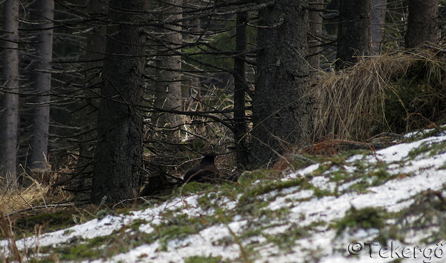 ...és rövid búcsúzkodás után elindulok vissza a fajdkakasokhoz. Magam maradtam, mint oly sokszor. Rég nem érzett érzés kezd úrrá lenni rajtam: megvannak, annyi év után végre...és gondolatban már ott is vagyok, már látom hova fogok lesbe ülni, már látom hogyan rója tisztelet teljes köreit előttem egy szép példány...Az hoz vissza a valóságba, hogy térdig süppedek a hóban. Hűvös, komor az oda vezető út, keveset süt be a nap a fenyők közé.